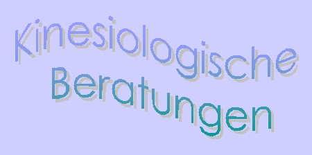 Kinesiologie ist nicht alles – aber sie unterstützt alles ! Ich arbeite mit verschiedenen kinesiologischen Techniken, u.a. mit: Psychokinesiologie nach Dr. D. Klinghardt Applied Physiology nach R. Utt Stress Indicator Point System nach I. Stubbings Touch for Health nach Dr. G. Goodheart Systematische Arbeit nach K. Wienert und Dr. H. Hein Phytokinesiologie nach Dr. U. Stumpf Spezialprogramme zur Lernförderung und zur Integration des Gehirns: Edu-Kinestetik - Brain Gym nach Dr. P. Dennison Neuro-Meridian-Kinestetik nach I. Große-Lindemann LEAP nach Dr. Ch. Krebs Brainfunction nach D. Corby Arbeiten mit frühkindlichen Reflexen nach S. Goddard und A. Chuchulowski Beratungsdauer: ca. 1 Stunde, 50,-- Euro